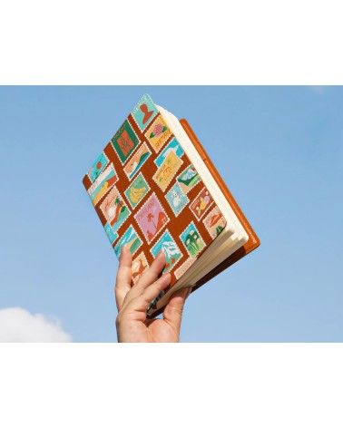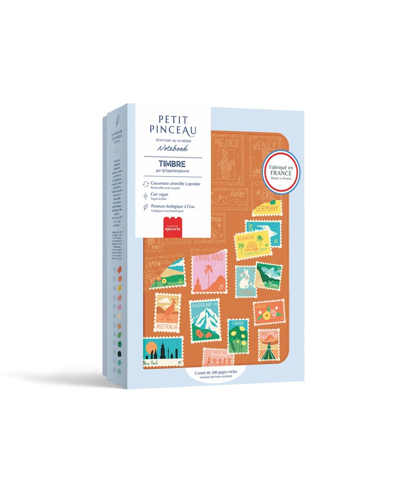 Un carnet à peindre inspiré des plus beaux timbres de voyage.
