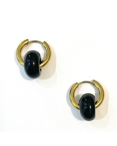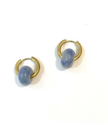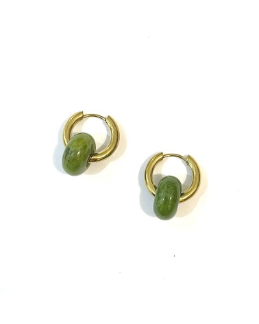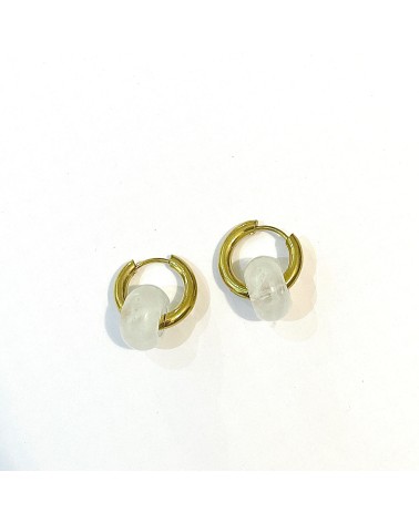 Une paire de boucles d'oreilles en acier inoxydable agrémentée d'une pierre naturelle, évoquant la légèreté des céréales Froot Loops.