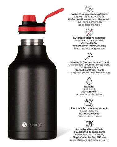 Bouteille isotherme XL 2 litres - Black - Les Artistes Paris