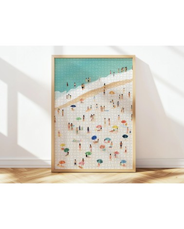 Ici, elle a donc illustré une plage remplie de baigneurs et de personnes profitant du soleil. On y retrouve des parasols, une eau turquoise et un air d'été. Plongez tête la première dans cette palette de couleurs que compose ce puzzle !