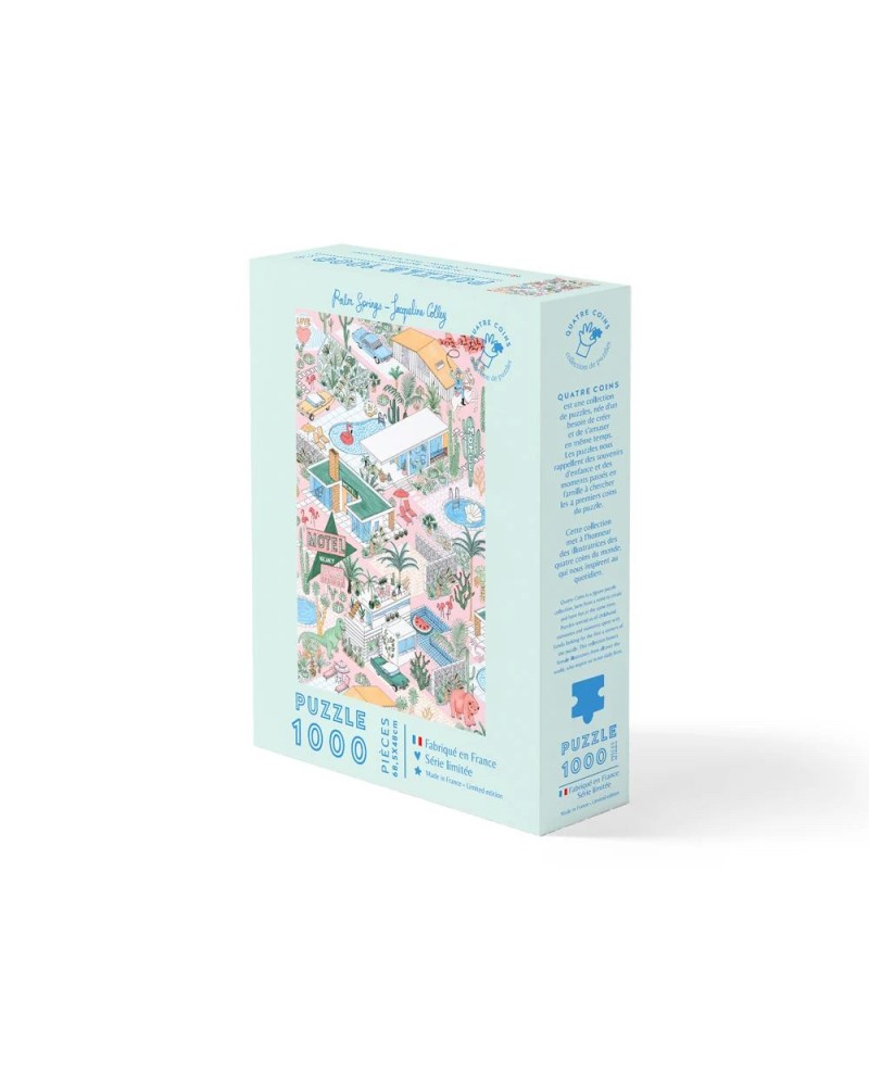 Ce puzzle Palm Springs a été fabriqué en France et dessiné par Jacqueline Colley, une illustratrice et créatrice de motif habitant à Londres.