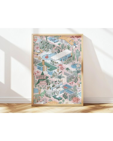Ici, elle a donc illustré la ville de Palm Springs avec ses piscines, un motel et ses voitures vintages qui caractérisent cette ville mythique des États-Unis. Admirez toute la palette de couleurs pastels que compose ce puzzle !