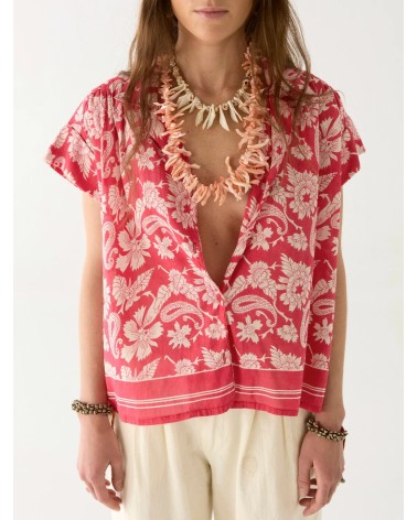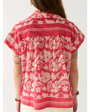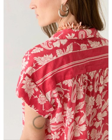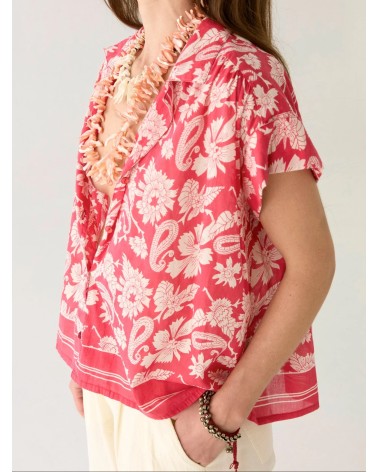 Légère comme l'air, ample comme une nuit d'été, cette chemise est une invitation au lâcher-prise. Sa base rouge profond est recouverte de fleurs et de cachemire oversize, telle une carte postale d'une escapade tropicale sans fin. Sa coupe décontractée accompagne vos mouvements : décontractée, toujours prête pour la prochaine aventure.