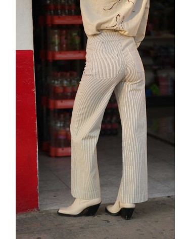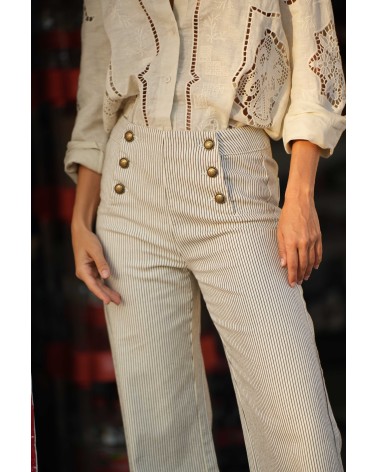 Jean Victorine à ponts - denim rayé taupe - Oraije