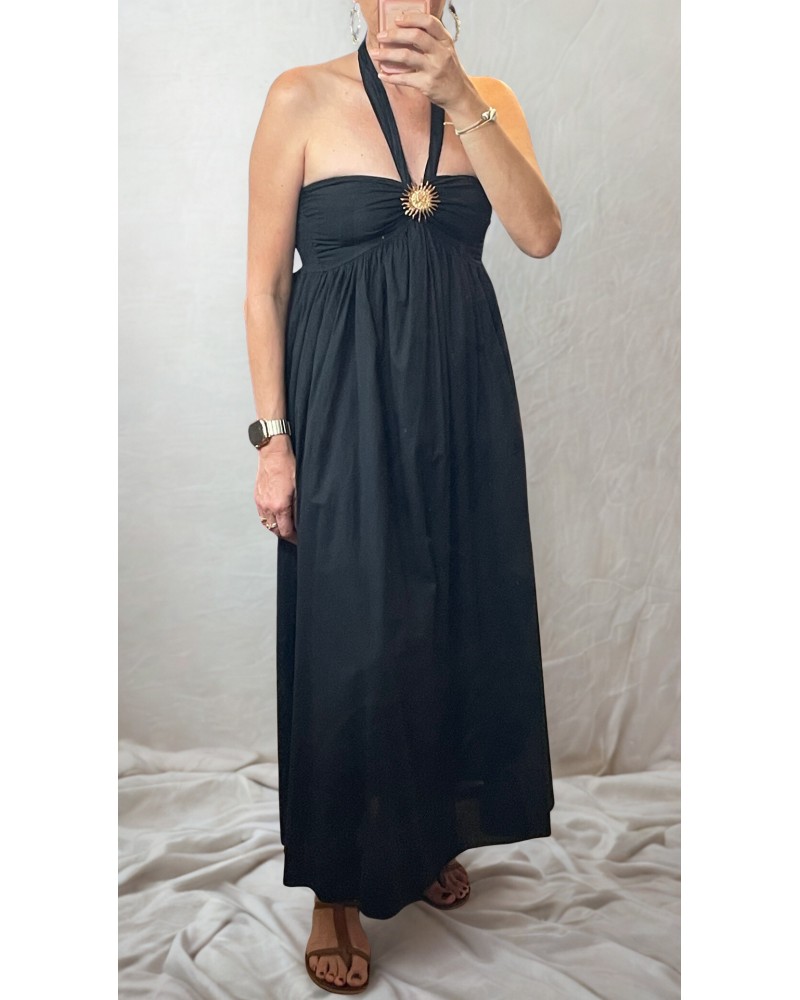 Robe longue bustier avec soleil au centre et lien autour du coup - Sunshine - Noir
