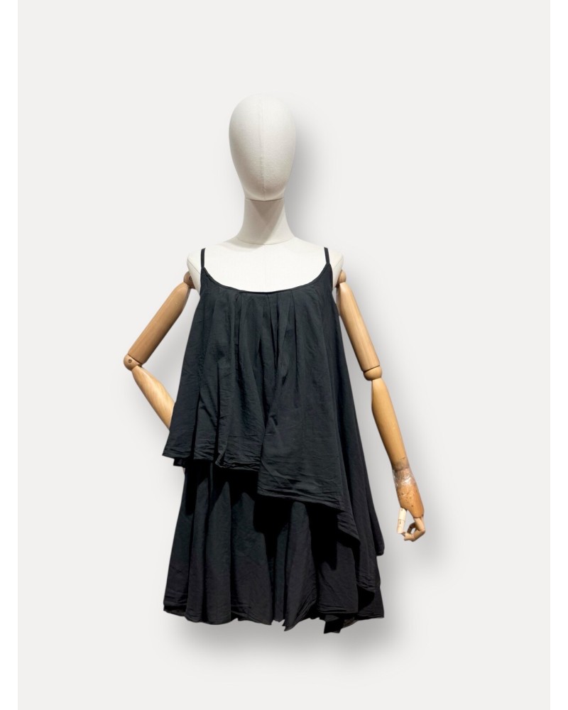 Robe courte à bretelles réglables volant asymétrique - Michelle - NOIR