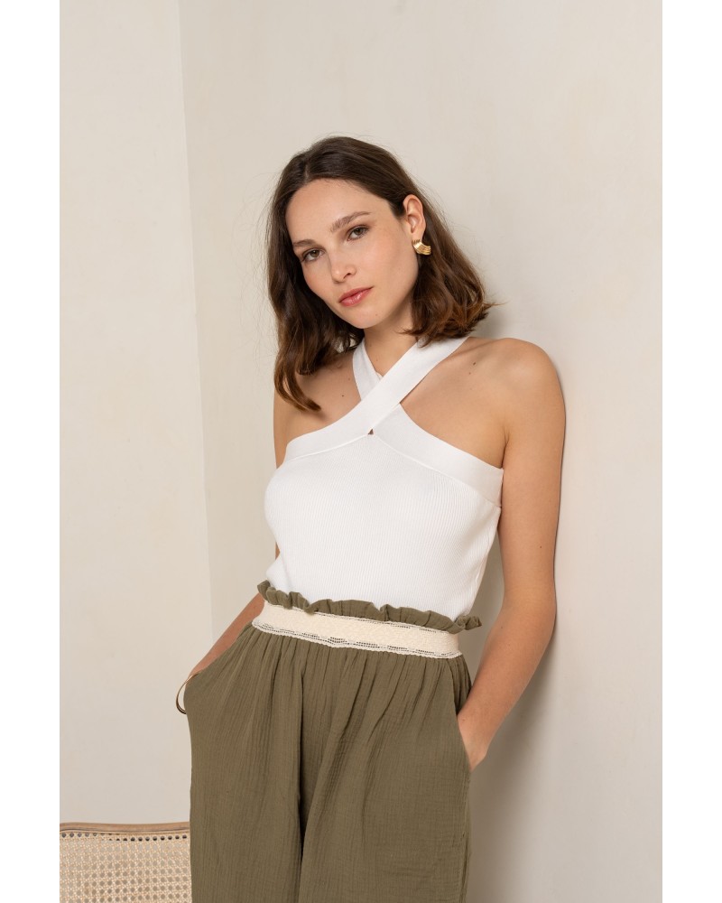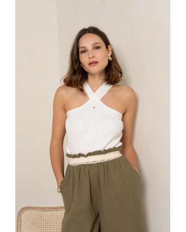 - Top sans manches à col croisé